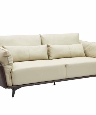 جولز كنب استقبال مكتبي ثلاثي جلد فاخر بيج مع بني وودي