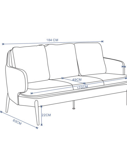زها كنب مكتبي 3 مقاعد 179 سم أسود وودي