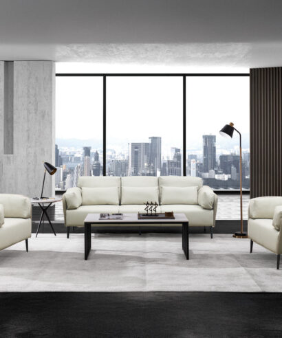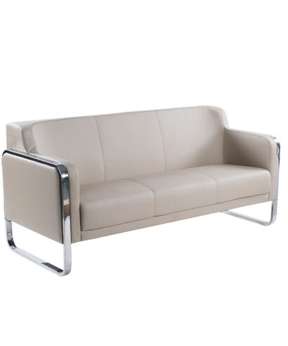 فينا كنب استقبال مكتبي ثلاثي جلد فاخر لون بيج مع بني وودي
