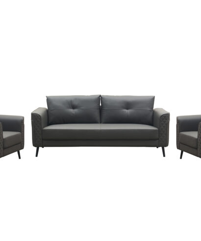ليفيا كنب مكتبي ثلاثي جلد رصاصي وودي